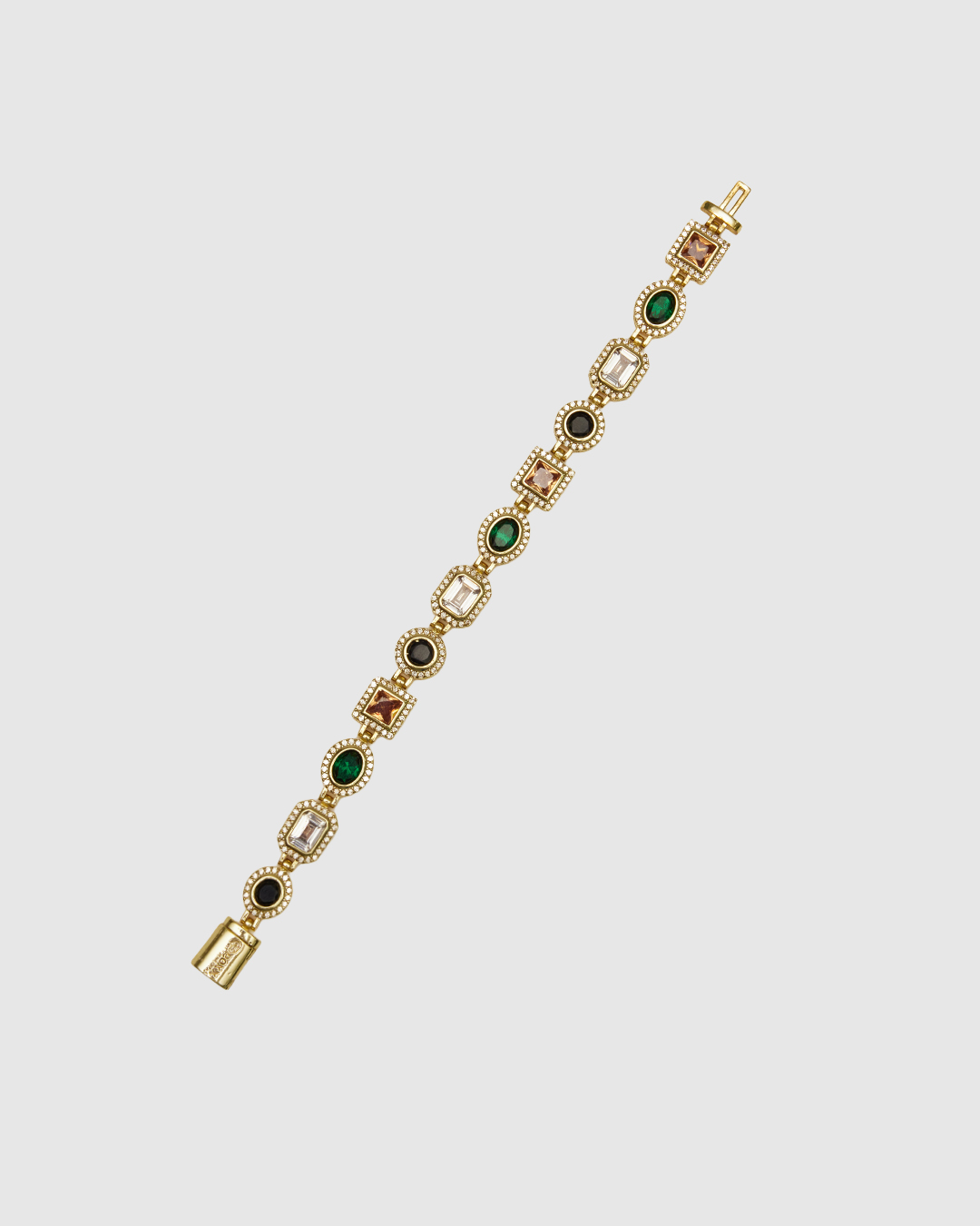 Bileklik, dayanıklılığıyla bilinen pirinç materyalden üretilmiştir. Yüzeyine uygulanan bakır baz kaplama, kararmaya karşı ekstra dayanıklılık sağlarken; son kat rodyum kaplama ürüne yüksek parlaklık ve premium bir görünüm kazandırır. PVD kaplama teknolojisi sayesinde uzun ömürlü kullanım ve yüksek yüzey kalitesi sunar.