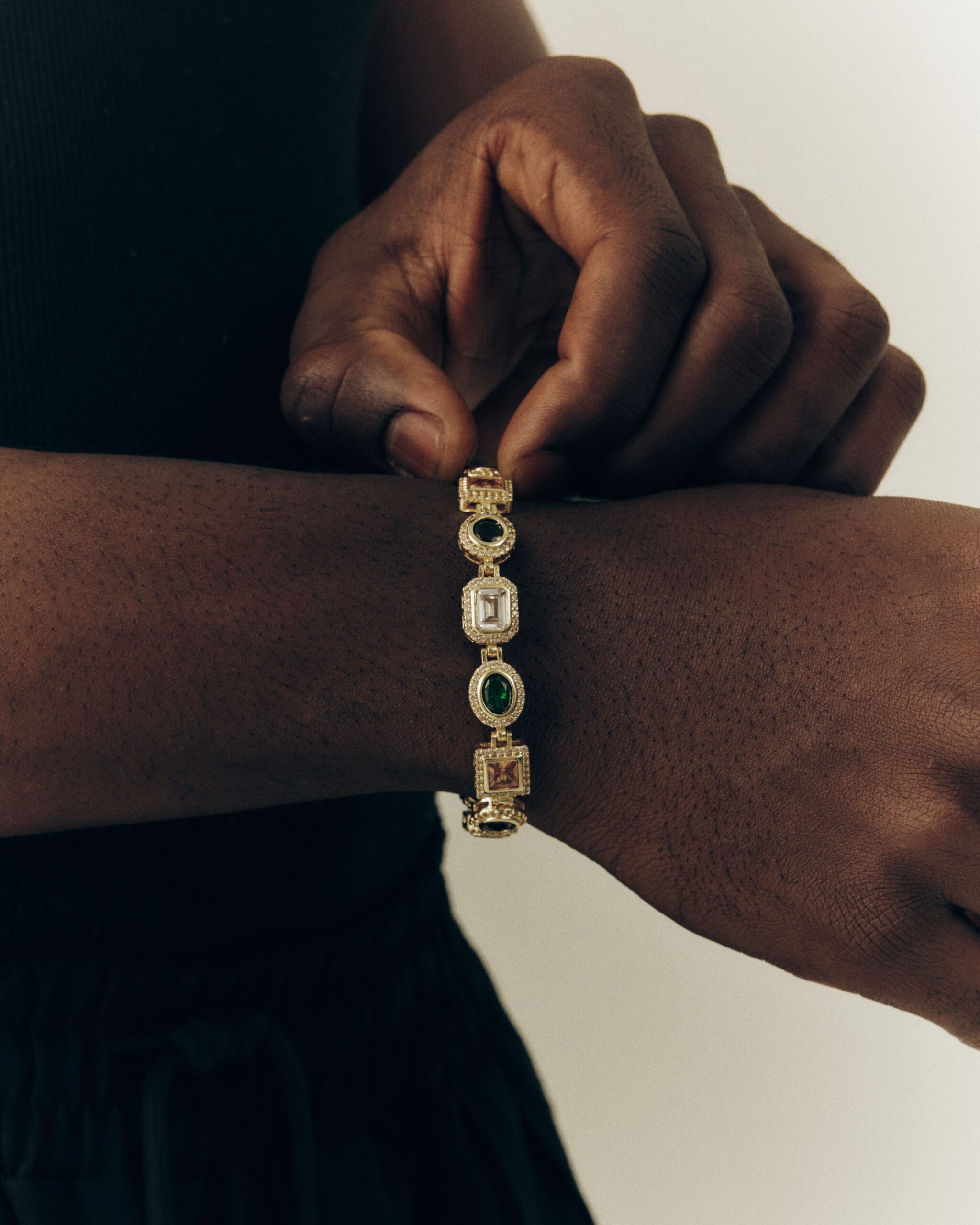 Pirinç malzeme üzerine uygulanan rodyum ve PVD kaplama ile üretilen bu özel bileklik, modern tasarımı ve güçlü duruşuyla stilinizi tamamlar. Zamansız çizgileri sayesinde hem günlük kullanımda hem de özel kombinlerde şık ve karakterli bir tamamlayıcı olarak öne çıkar.